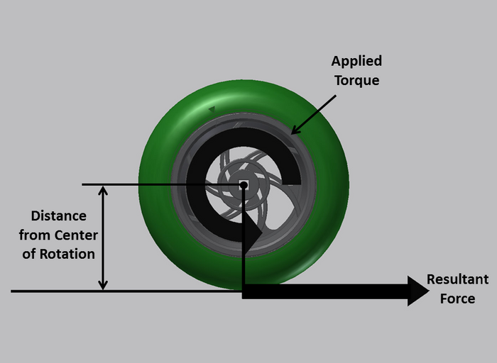 Ще започнем от базовите принципи на динамиката на колелата. За да се върти, към колелото трябва да се приложи въртящ момент. Стойността на въртящия момент може да се изчисли с помощта на радиуса на колелото и тангенционалната сила произведена от него.