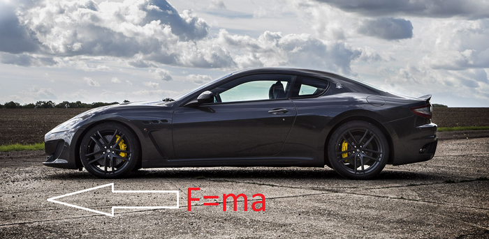 Според вторият закон на Нютон (F=ma), силата действаща на едно тяло е равна на произведението на масата на това тяло и векторното му ускорение.. При увеличение на диаметъра на колелото, движещата сила ще намалее, което ще завърши с понижение на ускорението на споменатите колела.