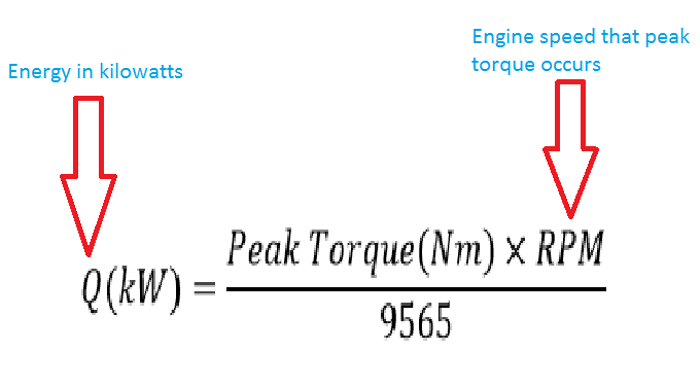 Киловатите могат да се измерят чрез стойността на въртящия момент при колелата на стенд и след вкарването на следното уравнение: