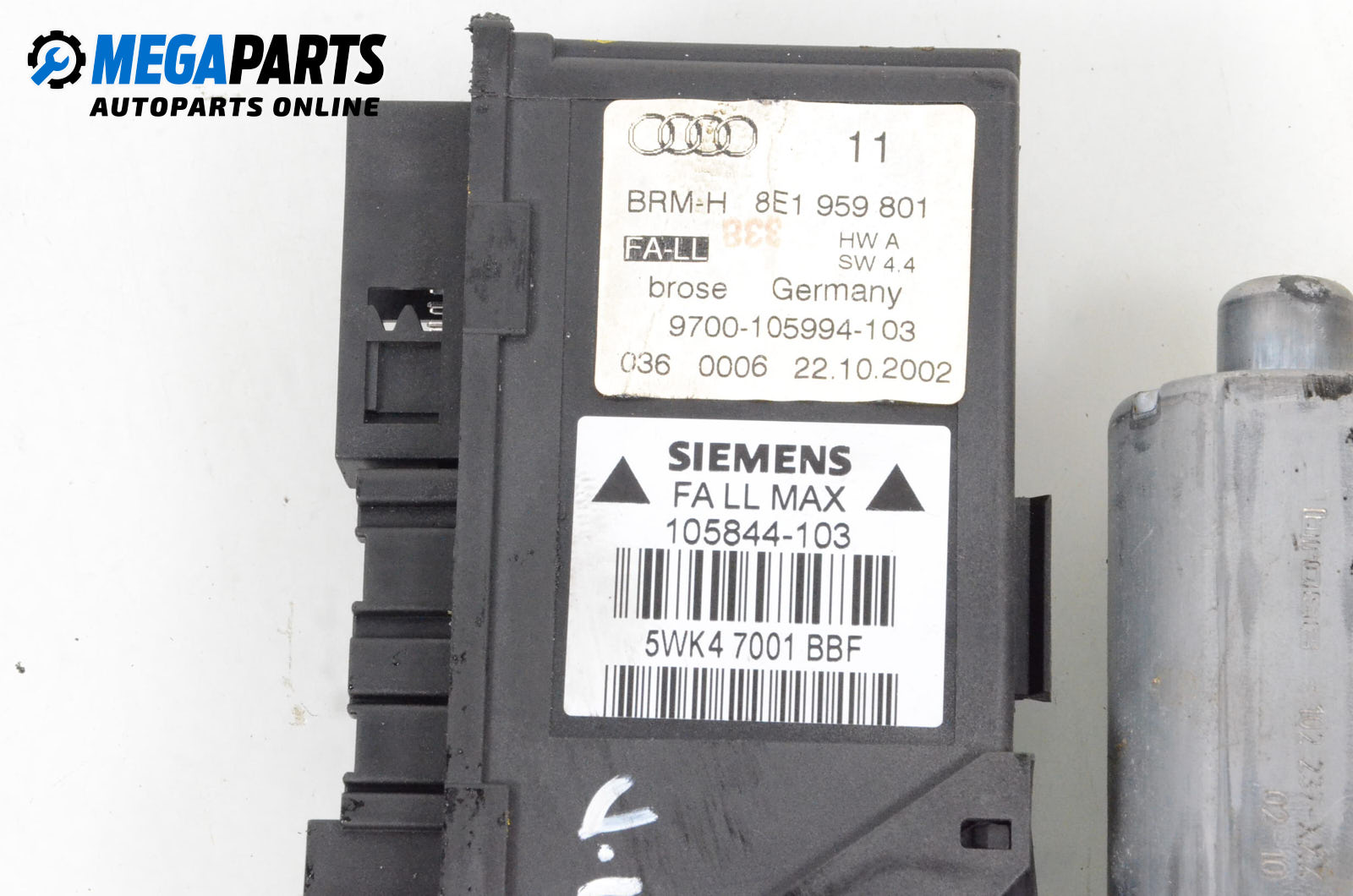Електромотор за стъклоподемник за Audi A4 Avant B6 (04.2001 - 12.2004), 4+1 вр., комби, позиция: предна, лява, № 8E1 959 801