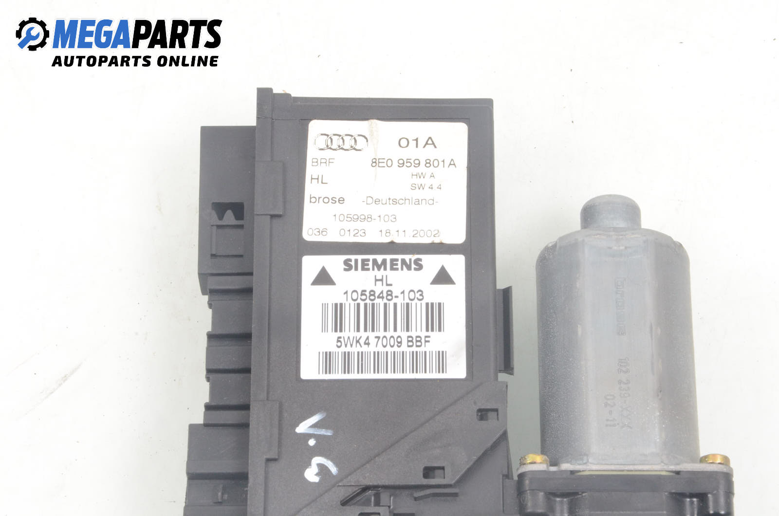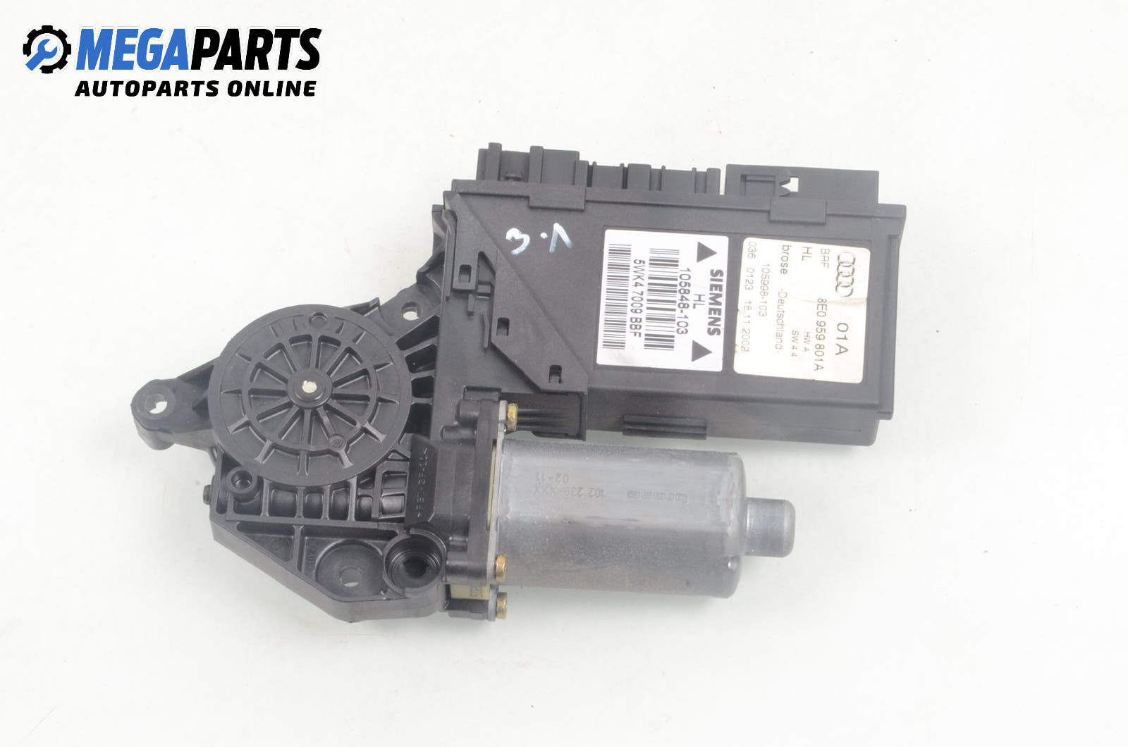Електромотор за стъклоподемник за Audi A4 Sedan B6 (11.2000 - 12.2004), 4+1 вр., седан, позиция: задна, лява, № 8E1 959 801A