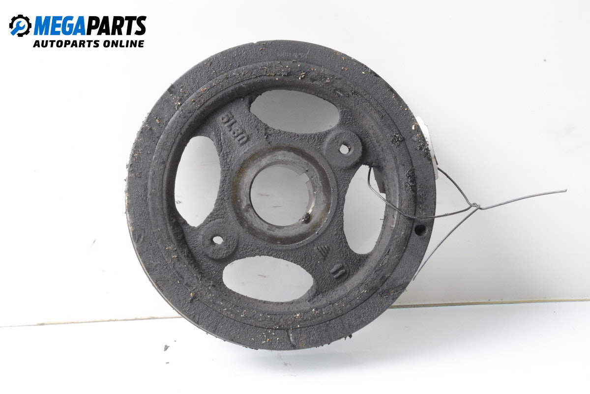 Тя се намира в предната част на коляновия вал, а конструкцията й представлява метална част (вътрешна), гумена сърцевина и външен метален обръч, върху който се поставя ремък.